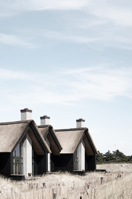 De tækkede strandvillaer ligger mellem Hvidbjergstrand Badehotel og det smukke klit landskab. Til lyden af knitrende brænde i pejsen kan man nyde havudsigten gennem de store vinduespartier.