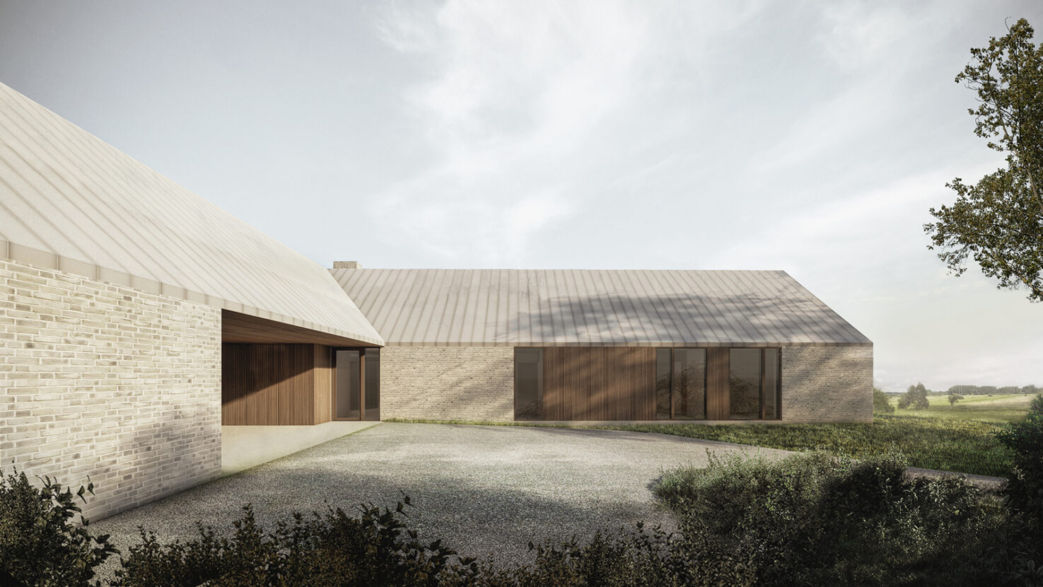 Field House er smukt placeret mellem markerne. Et moderne landhus med 3 længer sammenbundet af et elegant saddeltag. Den velkendte arkitektur ved den traditionelle gårdtype defineres på ny med nærhed til naturen og samtiden. Allerede fra entréen får man et glimt af udsigten ud over de åbne marker, som folder sig ud fra boligens rum. Fra husets hjerte i køkken alrummet er der kig til forældrenes afdeling mod øst, børnenes afdeling mod vest og de fælles rum mod syd. I orangeriet inviteres naturen indenfor med de store vinduespartier mod det åbne landskab. Huset forholder sig til det omkringliggende landskab med sine afdæmpede jordfarver i tegl, træ og ståltag. En moderne bolig der både danner rammen om det gode familieliv og sociale stunder.