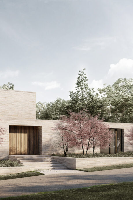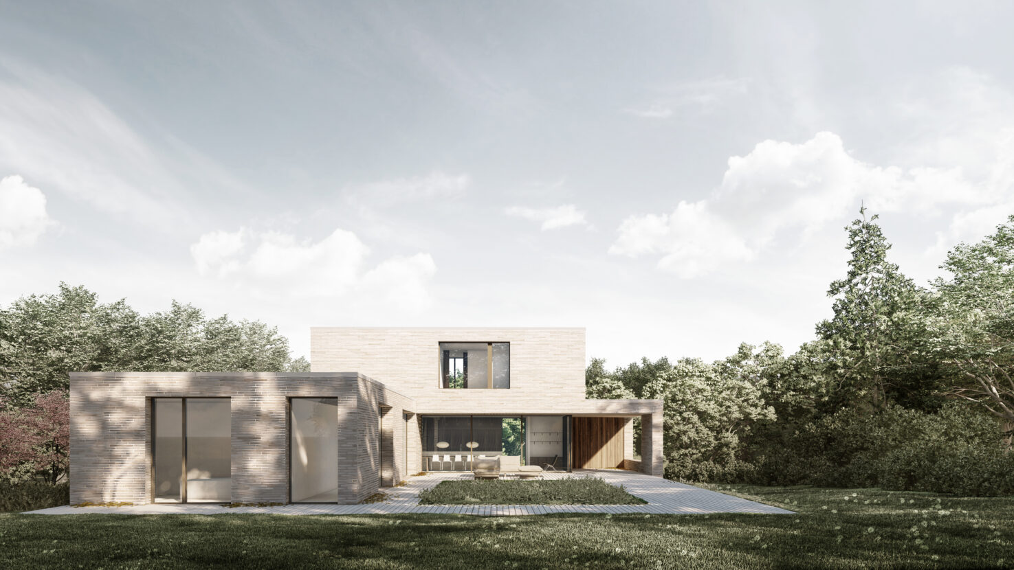 Med en lys tegl som gennemgående materiale manifesterer Riis Skov Residence sig i landskabet som et skulpturelt volumen, der på én gang åbner sig op mod udsigten og samtidigt indrammer det private haverum og ophold. Villaen fremstår med et eksklusivt og spændende arkitektonisk udtryk, hvor forskydninger i bygningsvolumener skaber overdækkede arealer og tæt kontakt til uderummene.