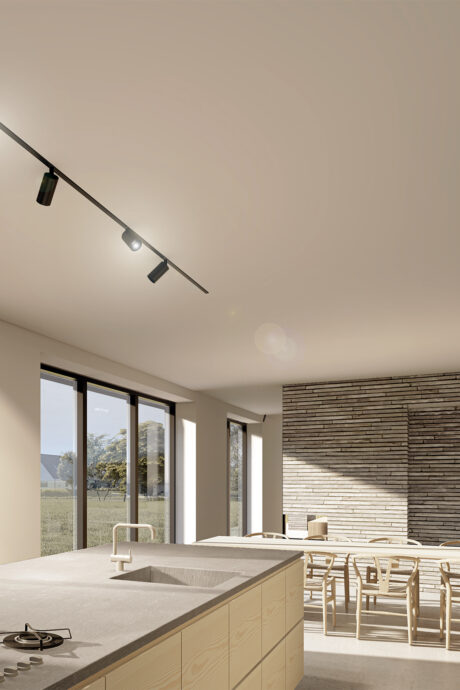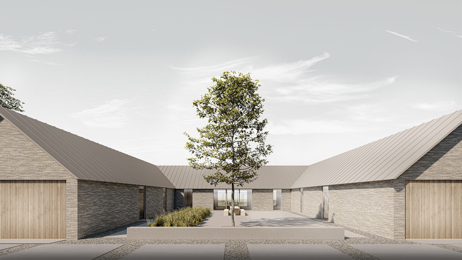 Landstedet placerer sig i det skrånende terræn på den naturskønne grund. Med sit velkendte gårdlænger, indskriver huset sig i landskabet. Huset åbner sig med store glaspartier mod den skønne udsigt ud over de grønne marker og fjorden. Huset fremstår solid med sin muret volumen som skaber rammer om familieophold, ude som inde.
