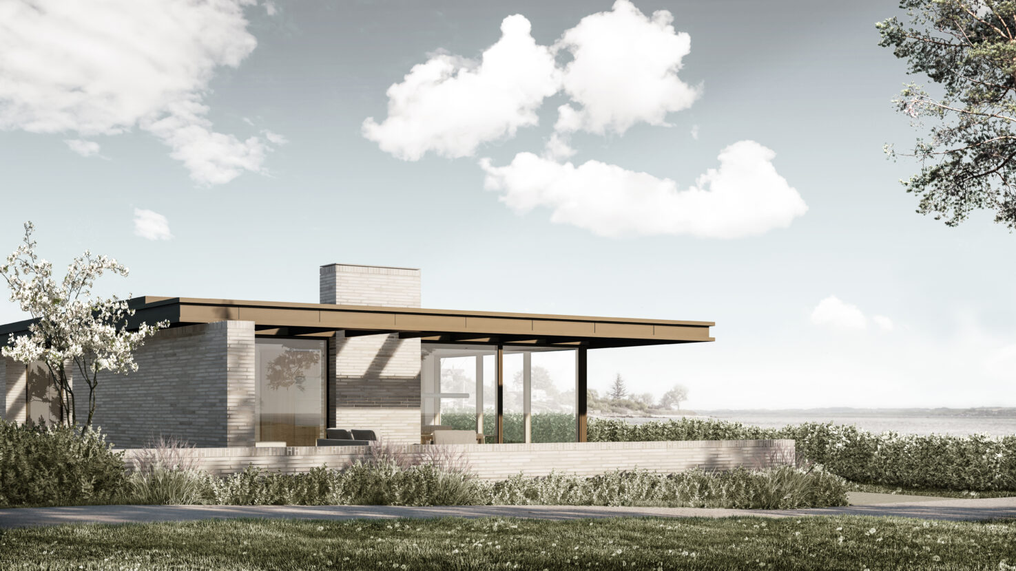 Nær Kalø Vig, ligger Shell House placeret med skønne kig til vandet og smukke træer i baghaven. Boligen forholder sig til udsigten ved at åbne sig op med hjerterummene på den sydlige del af grunden – og udsigten og den tætte kontakt til naturen vil kunne nydes indefra.